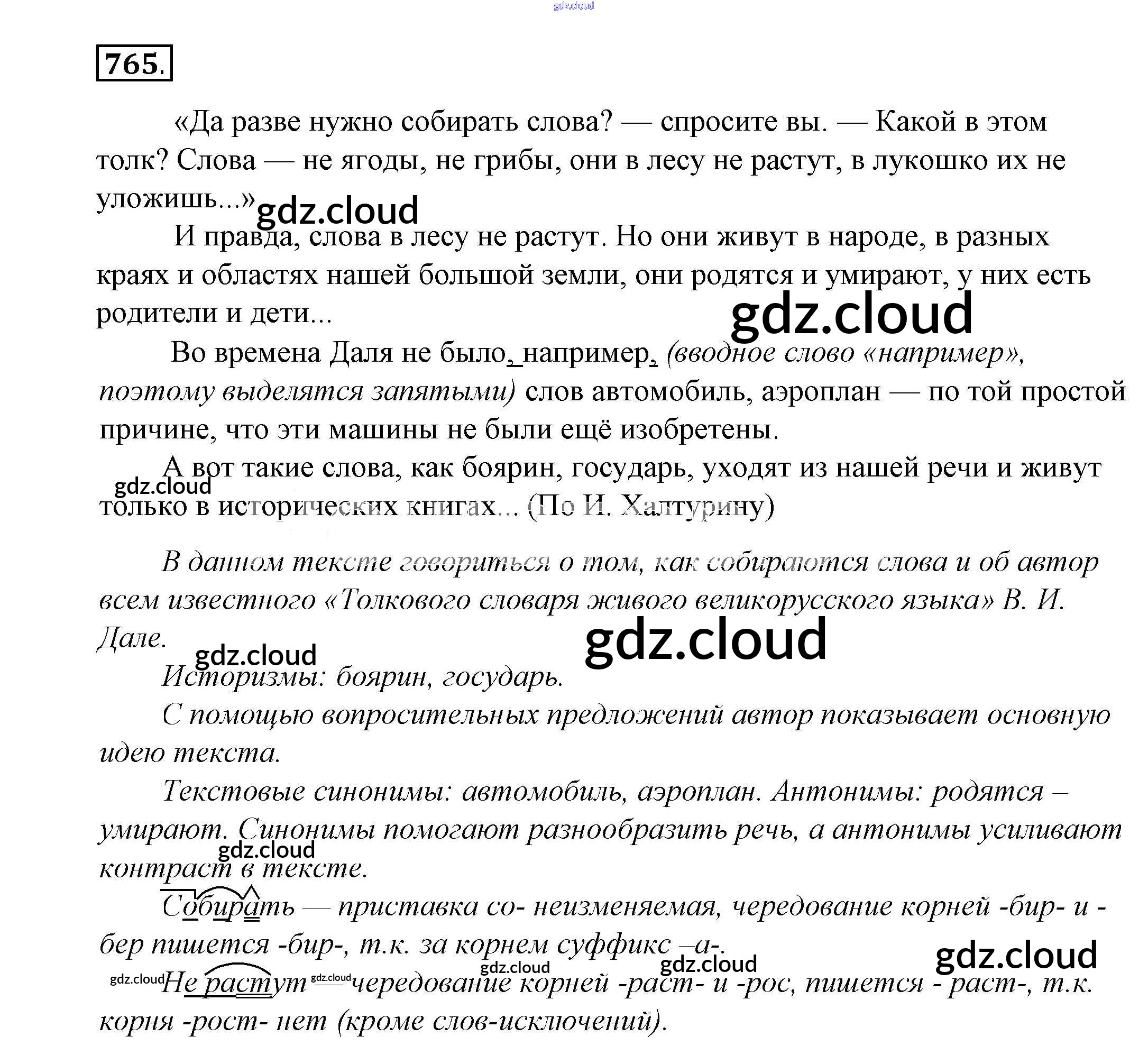 Ответ на задание 765 Учебник Русский язык за 5 (пятый) класс Купалова, Еремеева, Лидман-Орлова 2015 ФГОС онлайн и без номера телефона.