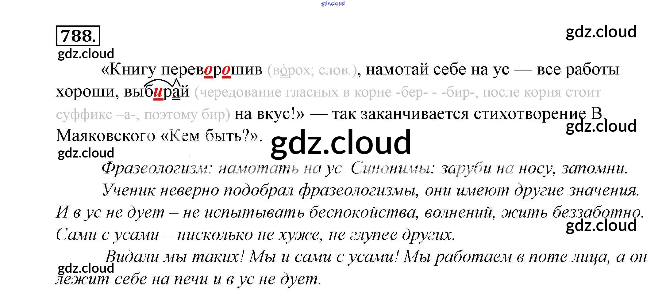 Ответ на задание 788 Учебник Русский язык за 5 (пятый) класс Купалова, Еремеева, Лидман-Орлова 2015 ФГОС онлайн и без номера телефона.