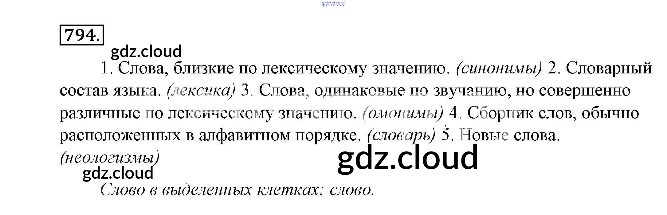 Ответ на задание 794 Учебник Русский язык за 5 (пятый) класс Купалова, Еремеева, Лидман-Орлова 2015 ФГОС онлайн и без номера телефона.