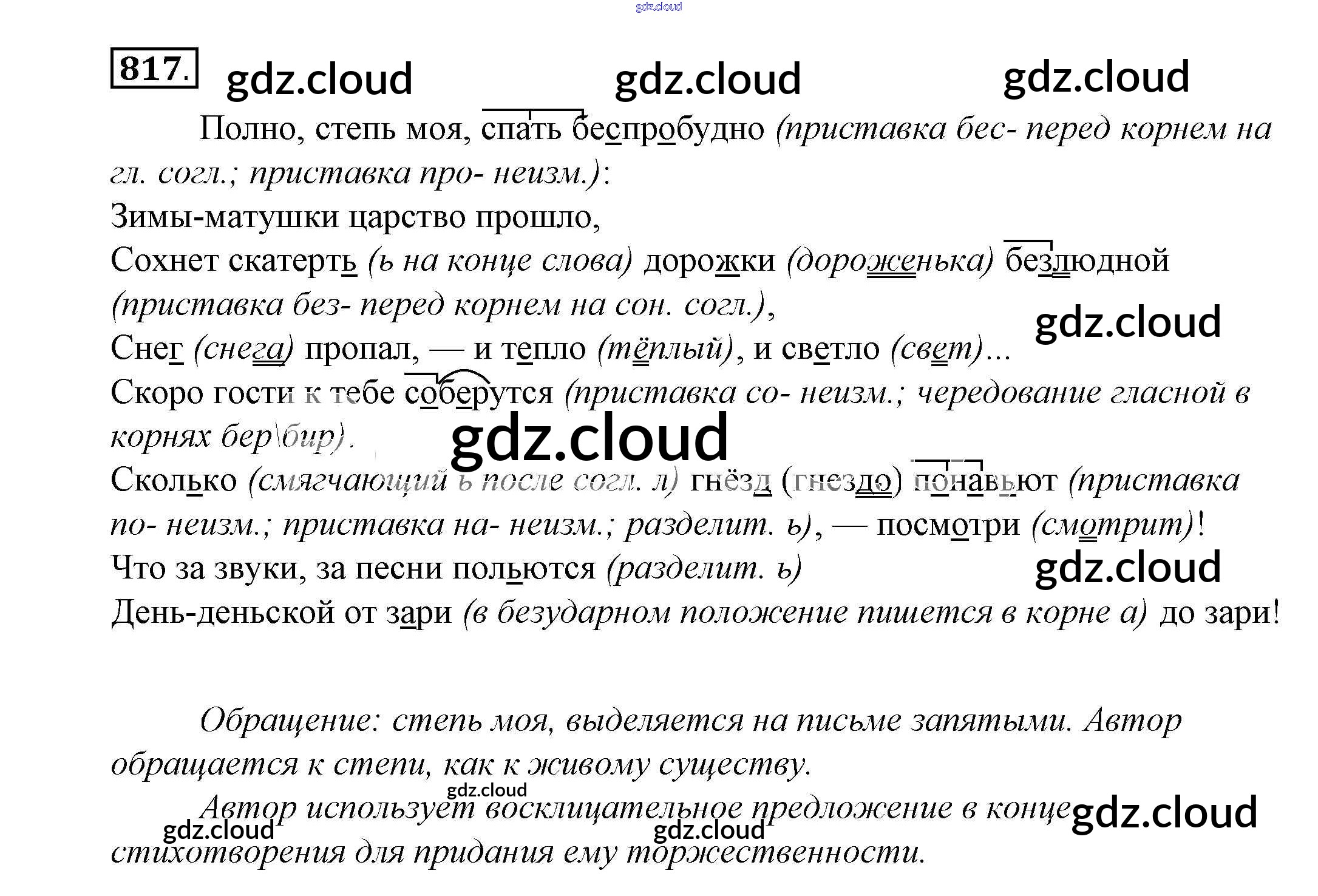 Ответ на задание 817 Учебник Русский язык за 5 (пятый) класс Купалова, Еремеева, Лидман-Орлова 2015 ФГОС онлайн и без номера телефона.