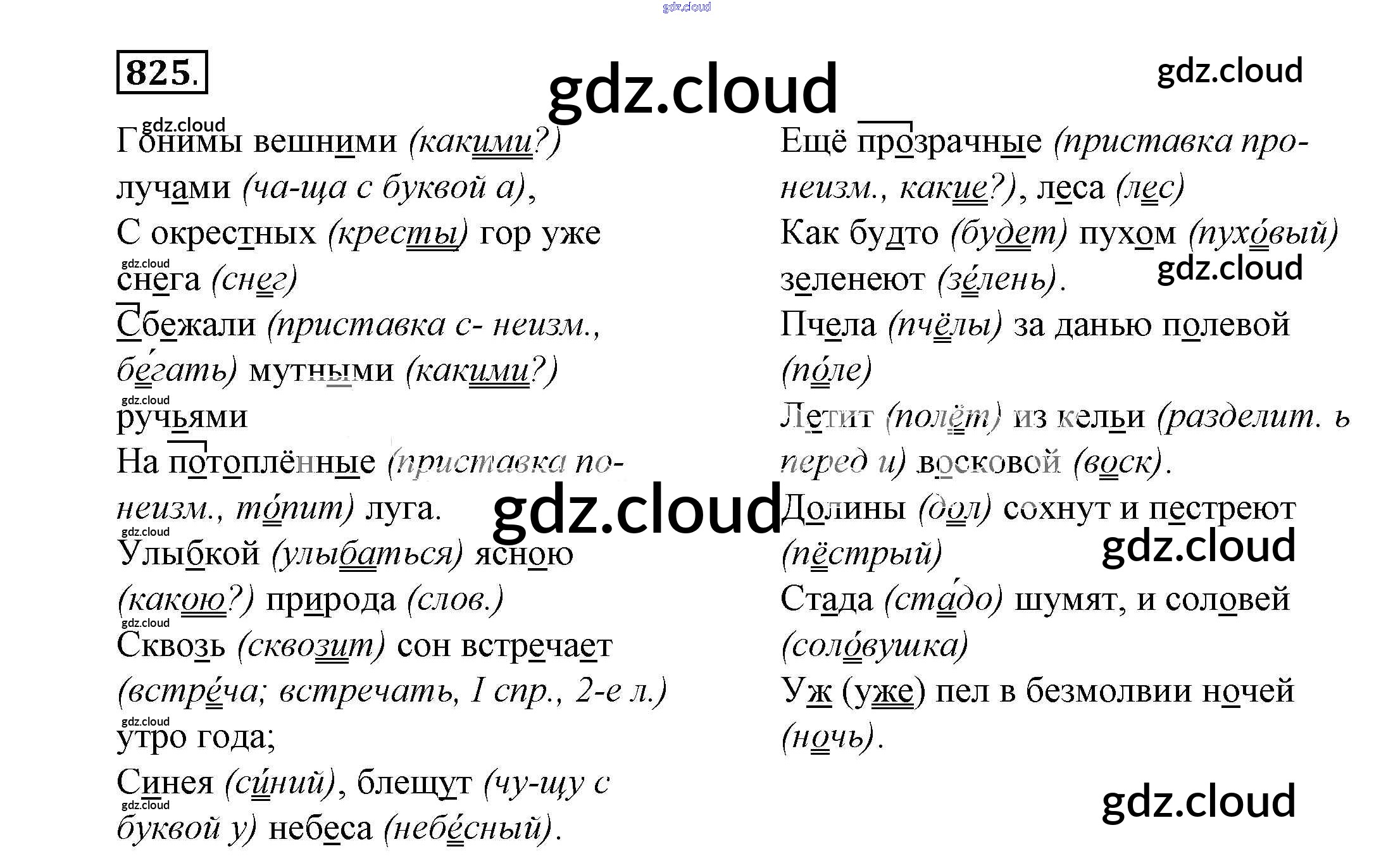 Ответ на задание 825 Учебник Русский язык за 5 (пятый) класс Купалова, Еремеева, Лидман-Орлова 2015 ФГОС онлайн и без номера телефона.