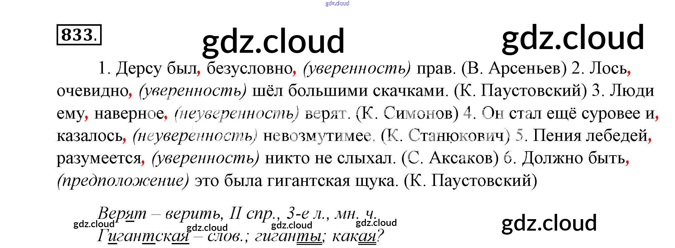 Ответ на задание 833 Учебник Русский язык за 5 (пятый) класс Купалова, Еремеева, Лидман-Орлова 2015 ФГОС онлайн и без номера телефона.
