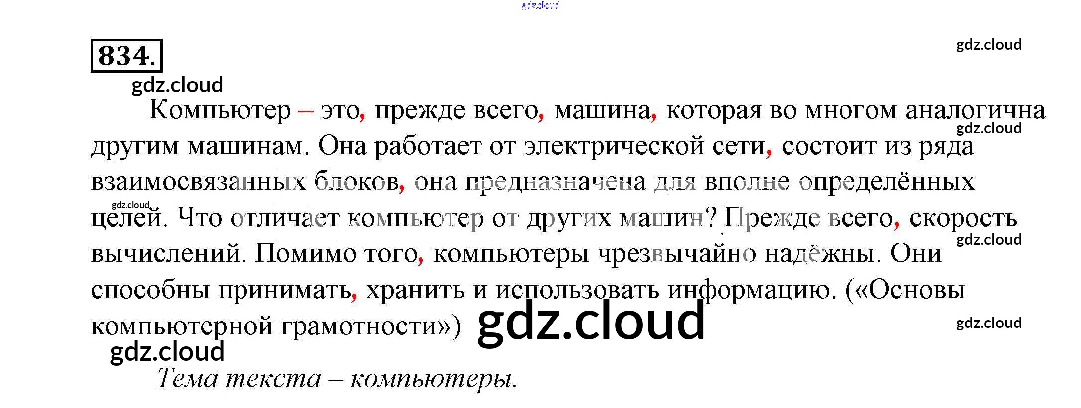 Ответ на задание 834 Учебник Русский язык за 5 (пятый) класс Купалова, Еремеева, Лидман-Орлова 2015 ФГОС онлайн и без номера телефона.