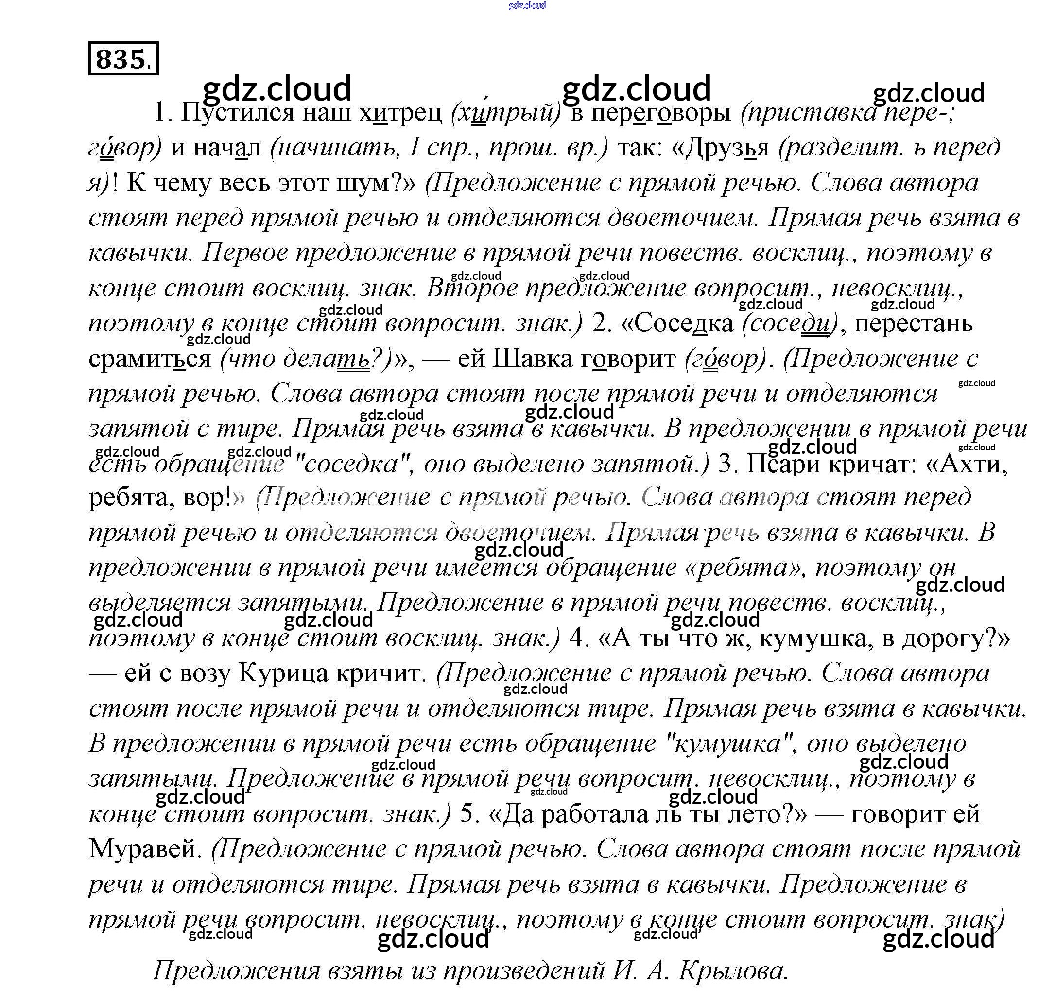 Ответ на задание 835 Учебник Русский язык за 5 (пятый) класс Купалова, Еремеева, Лидман-Орлова 2015 ФГОС онлайн и без номера телефона.