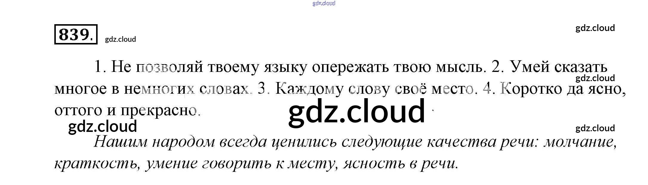 Ответ на задание 839 Учебник Русский язык за 5 (пятый) класс Купалова, Еремеева, Лидман-Орлова 2015 ФГОС онлайн и без номера телефона.