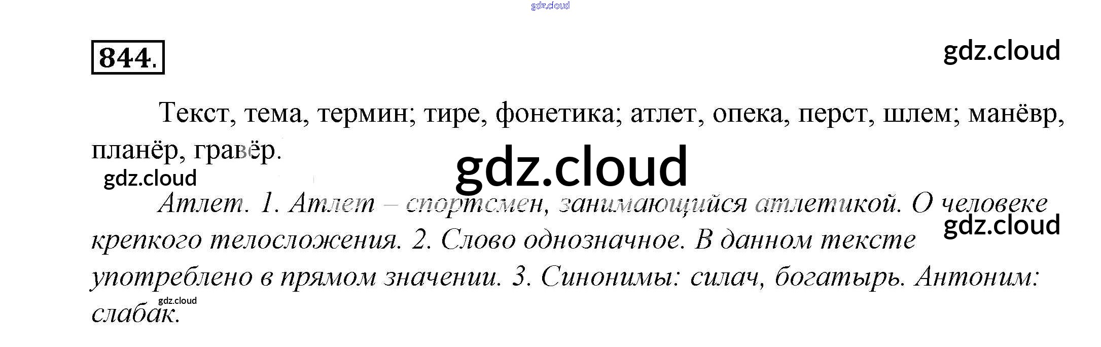 Ответ на задание 844 Учебник Русский язык за 5 (пятый) класс Купалова, Еремеева, Лидман-Орлова 2015 ФГОС онлайн и без номера телефона.