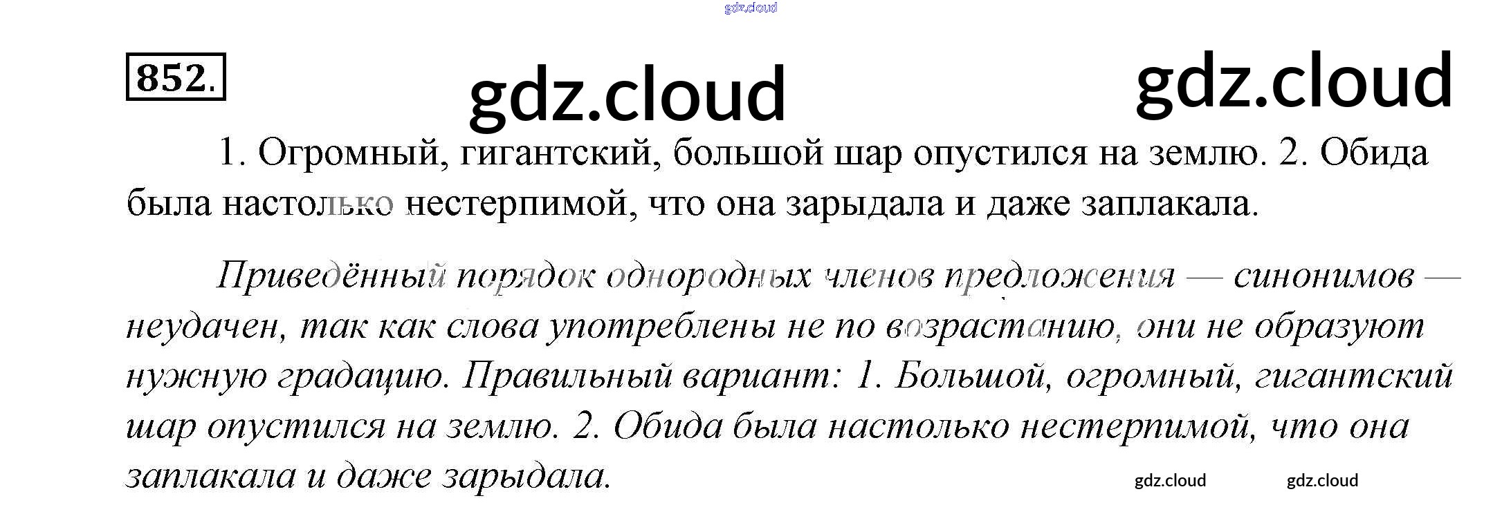 Ответ на задание 852 Учебник Русский язык за 5 (пятый) класс Купалова, Еремеева, Лидман-Орлова 2015 ФГОС онлайн и без номера телефона.