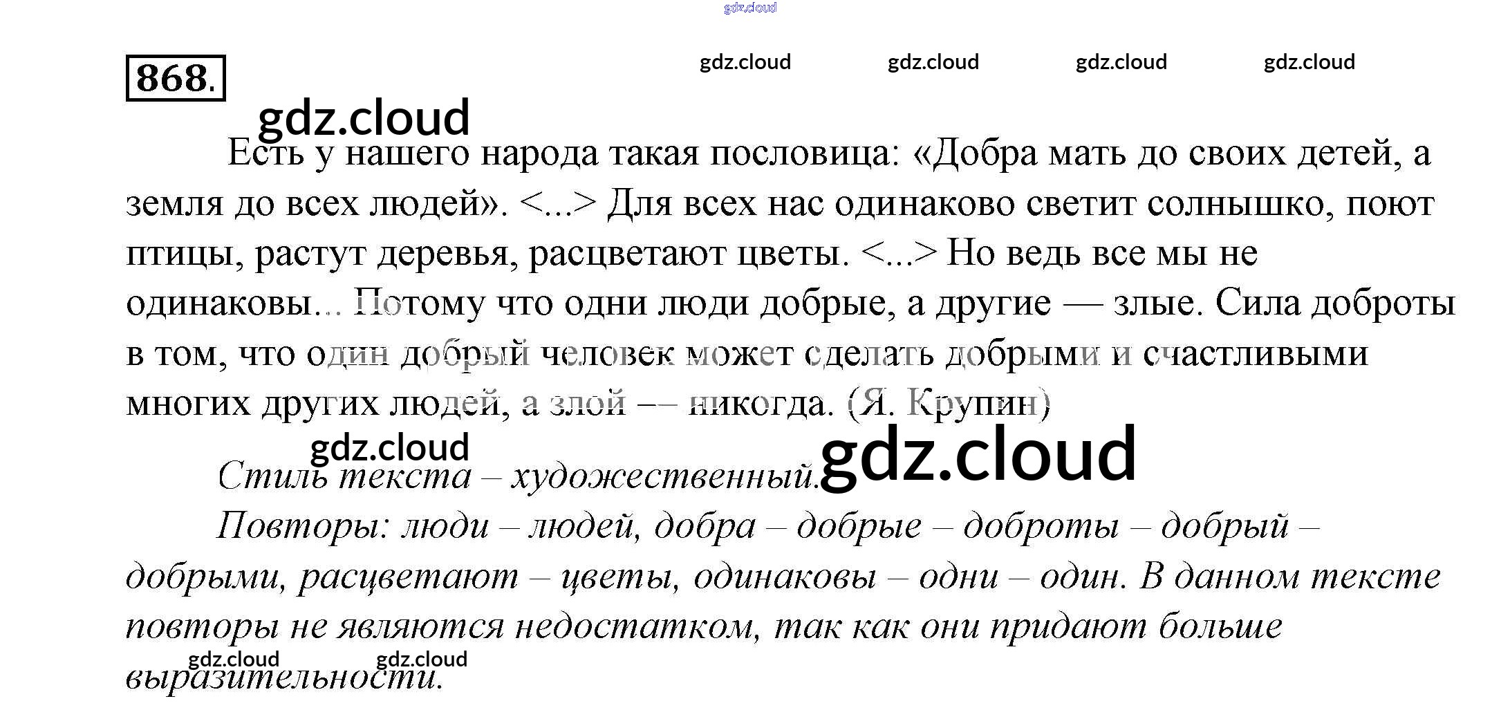 Ответ на задание 868 Учебник Русский язык за 5 (пятый) класс Купалова, Еремеева, Лидман-Орлова 2015 ФГОС онлайн и без номера телефона.