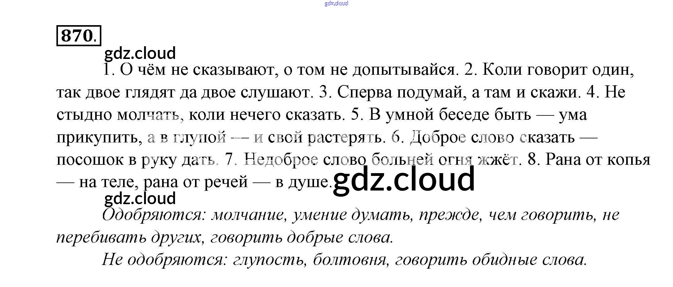 Ответ на задание 870 Учебник Русский язык за 5 (пятый) класс Купалова, Еремеева, Лидман-Орлова 2015 ФГОС онлайн и без номера телефона.