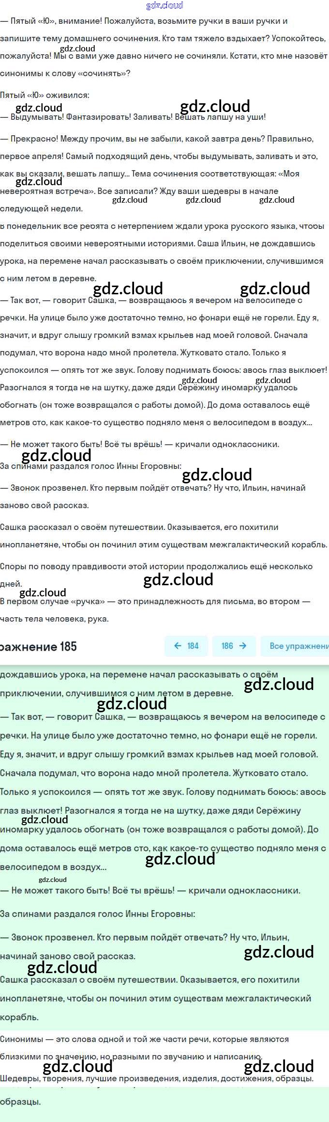 Ответ на задание 185 Учебник Русский язык за 5 (пятый) класс Рыбченкова, Александрова, Глазков 2019 ФГОС онлайн и без номера телефона.