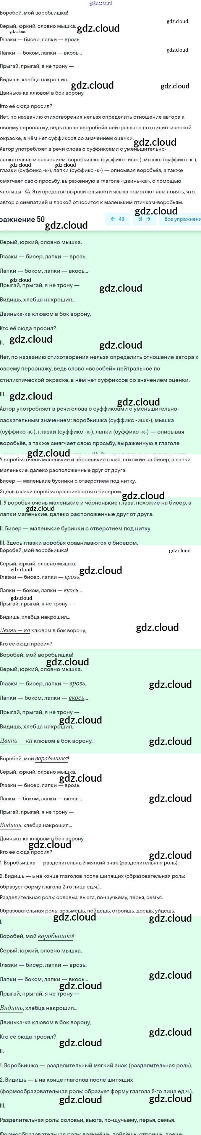 Ответ на задание 50 Учебник Русский язык за 5 (пятый) класс Рыбченкова, Александрова, Глазков 2019 ФГОС онлайн и без номера телефона.
