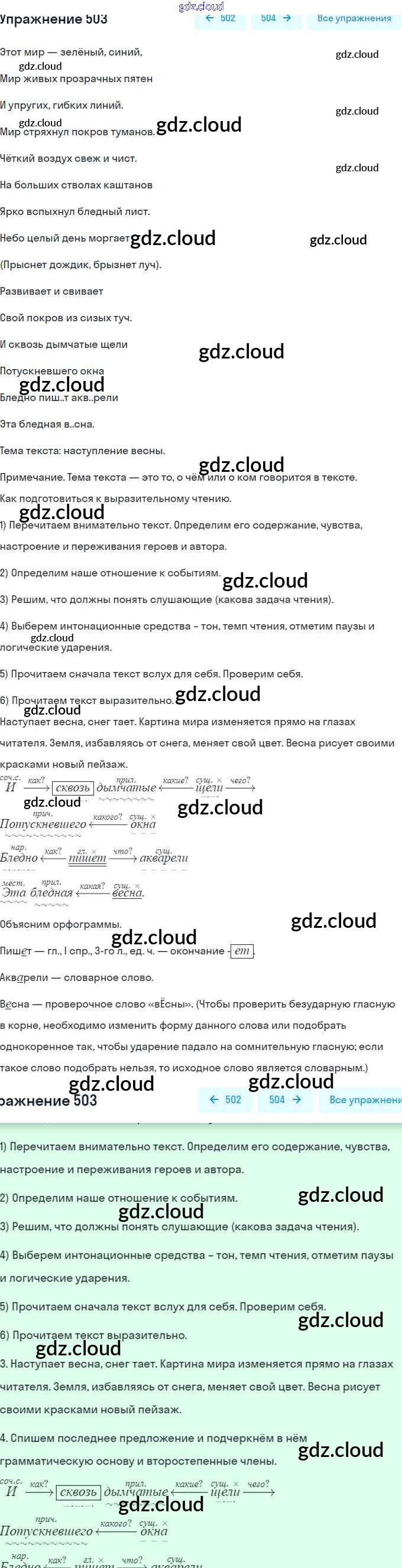 Ответ на задание 503 Учебник Русский язык за 5 (пятый) класс Рыбченкова, Александрова, Глазков 2019 ФГОС онлайн и без номера телефона.