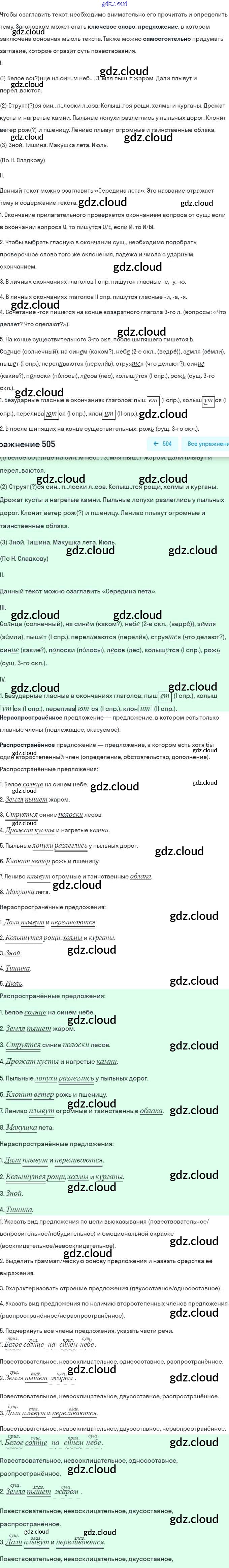 Ответ на задание 505 Учебник Русский язык за 5 (пятый) класс Рыбченкова, Александрова, Глазков 2019 ФГОС онлайн и без номера телефона.