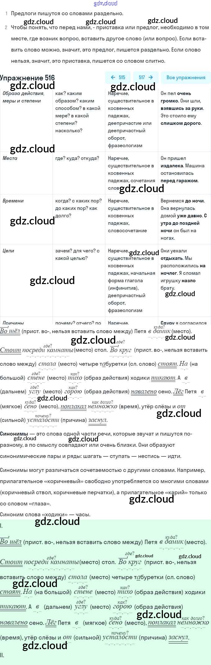 Ответ на задание 516 Учебник Русский язык за 5 (пятый) класс Рыбченкова, Александрова, Глазков 2019 ФГОС онлайн и без номера телефона.