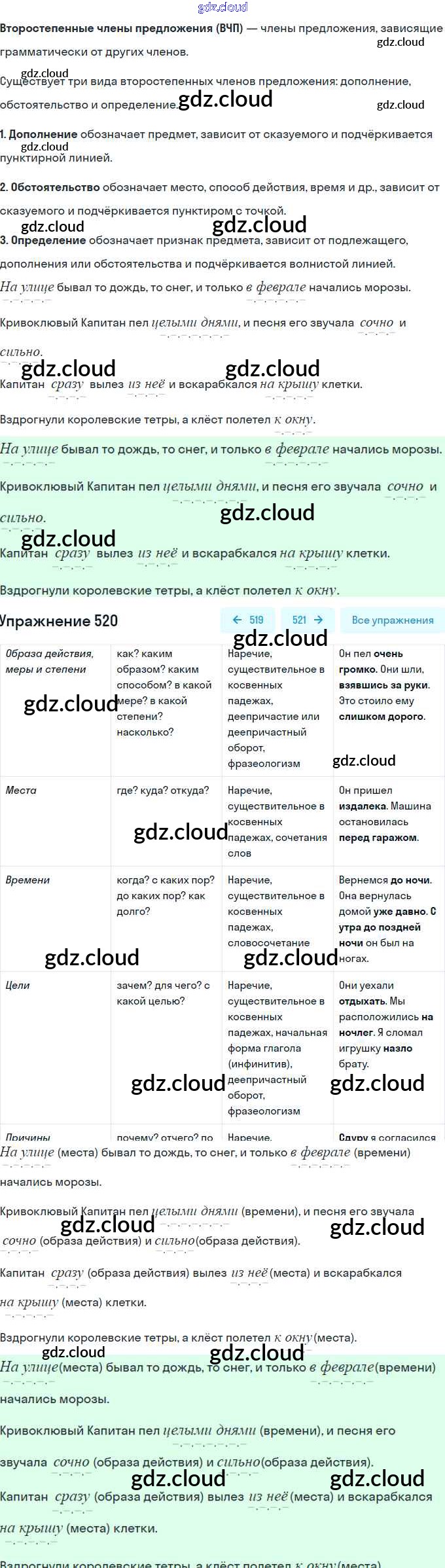 Ответ на задание 520 Учебник Русский язык за 5 (пятый) класс Рыбченкова, Александрова, Глазков 2019 ФГОС онлайн и без номера телефона.