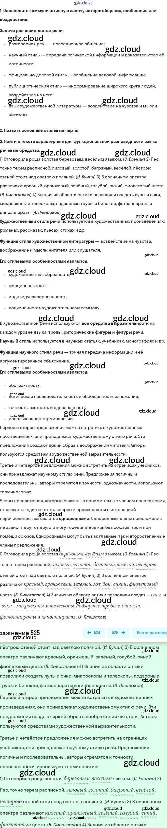 Ответ на задание 525 Учебник Русский язык за 5 (пятый) класс Рыбченкова, Александрова, Глазков 2019 ФГОС онлайн и без номера телефона.