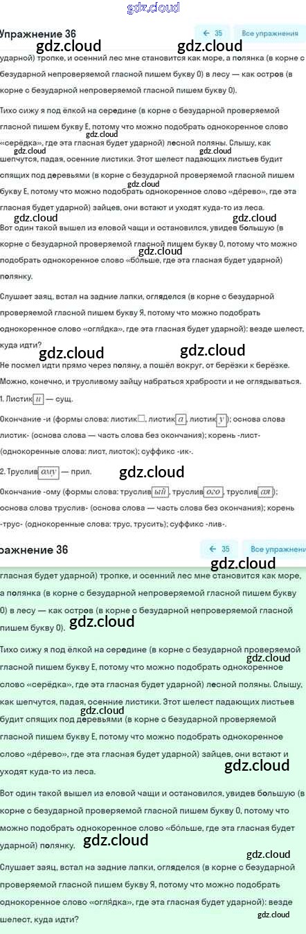 Ответ на задание 36 Учебник Русский язык за 5 (пятый) класс Шмелёв, Флоренская, Габович Алгоритм успеха 2022 Часть 1, 2