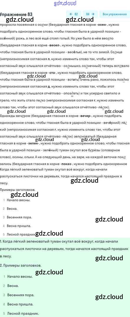 Ответ на задание 83 Учебник Русский язык за 5 (пятый) класс Шмелёв, Флоренская, Габович Алгоритм успеха 2022 Часть 1, 2