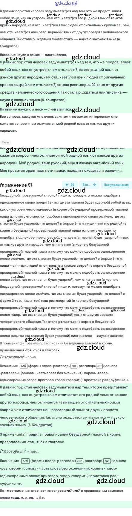 Ответ на задание 97 Учебник Русский язык за 5 (пятый) класс Шмелёв, Флоренская, Габович Алгоритм успеха 2022 Часть 1, 2