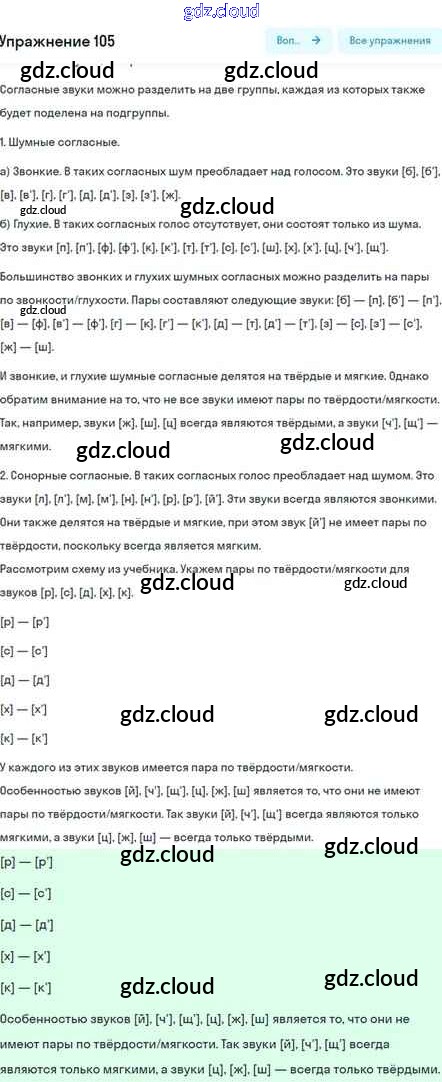 Ответ на задание 105 Учебник Русский язык за 5 (пятый) класс Шмелёв, Флоренская, Габович Алгоритм успеха 2022 Часть 1, 2
