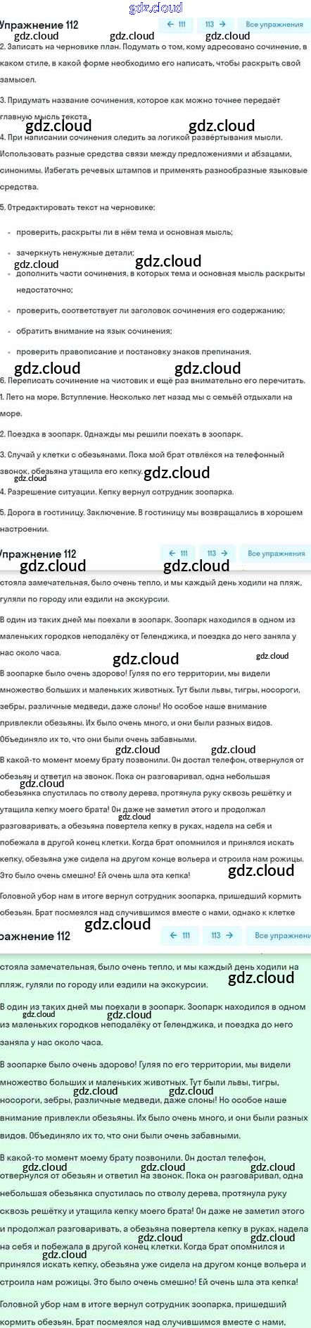 Ответ на задание 112 Учебник Русский язык за 5 (пятый) класс Шмелёв, Флоренская, Габович Алгоритм успеха 2022 Часть 1, 2