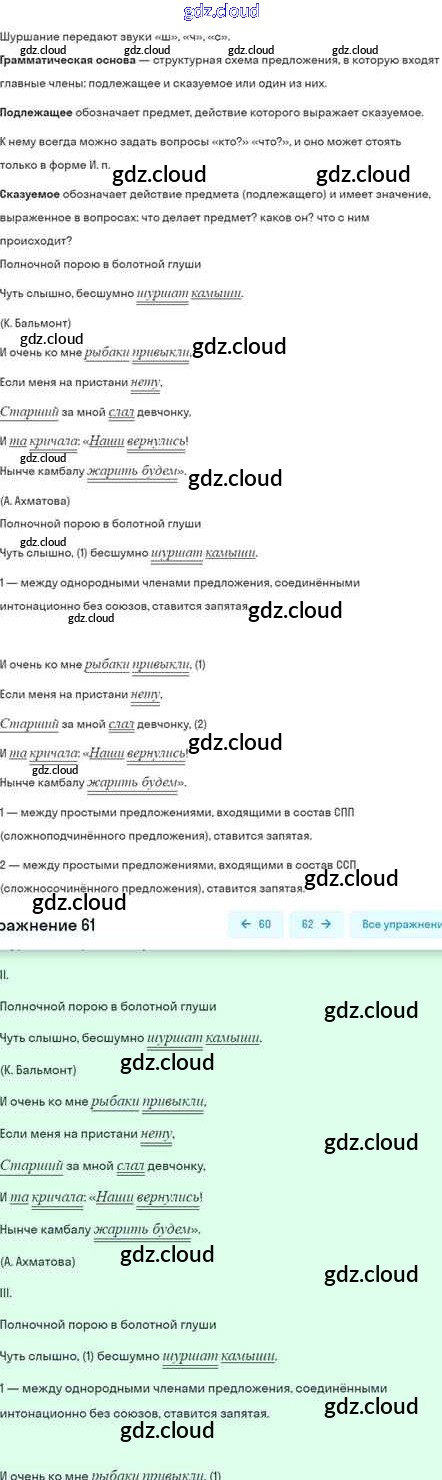 Ответ на задание 61 Учебник Русский язык за 5 (пятый) класс Шмелёв, Флоренская, Габович Алгоритм успеха 2022 Часть 1, 2