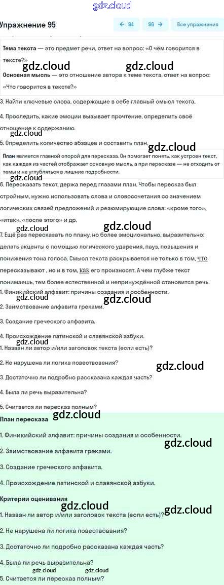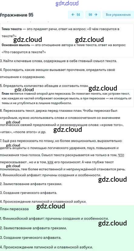 Ответ на задание 95 Учебник Русский язык за 5 (пятый) класс Шмелёв, Флоренская, Габович Алгоритм успеха 2022 Часть 1, 2