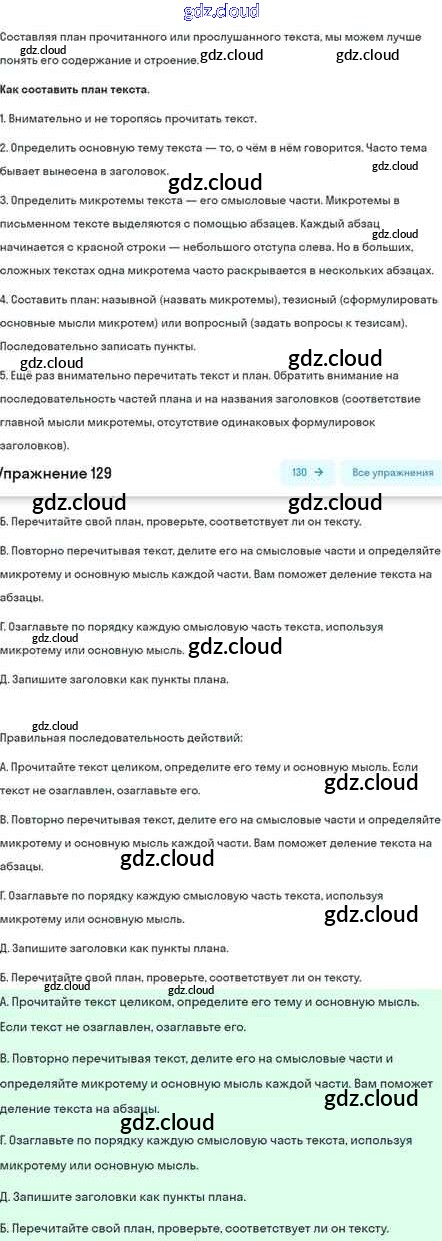 Ответ на задание 129 Учебник Русский язык за 5 (пятый) класс Шмелёв, Флоренская, Габович Алгоритм успеха 2022 Часть 1, 2