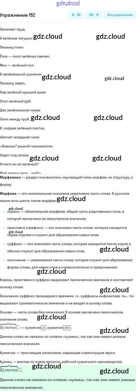 Ответ на задание 152 Учебник Русский язык за 5 (пятый) класс Шмелёв, Флоренская, Габович Алгоритм успеха 2022 Часть 1, 2