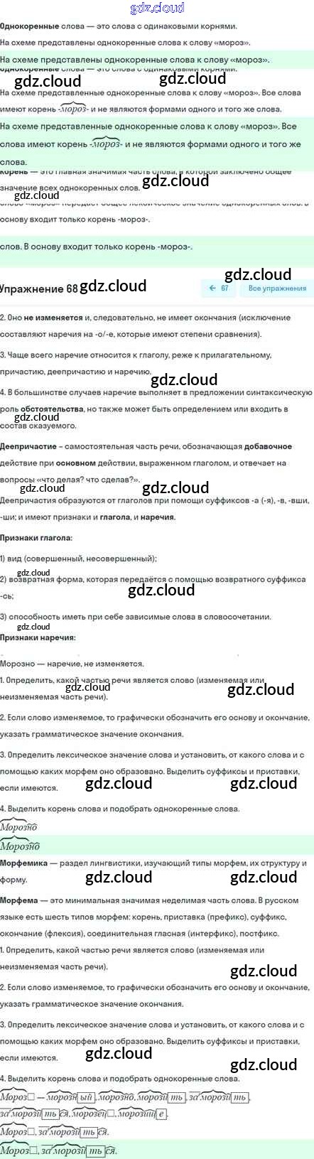 Ответ на задание 68 Учебник Русский язык за 5 (пятый) класс Шмелёв, Флоренская, Габович Алгоритм успеха 2022 Часть 1, 2