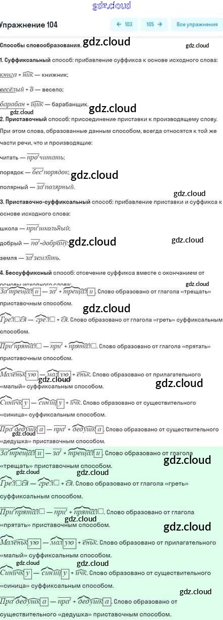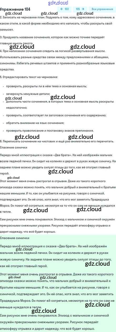 Ответ на задание 104 Учебник Русский язык за 5 (пятый) класс Шмелёв, Флоренская, Габович Алгоритм успеха 2022 Часть 1, 2