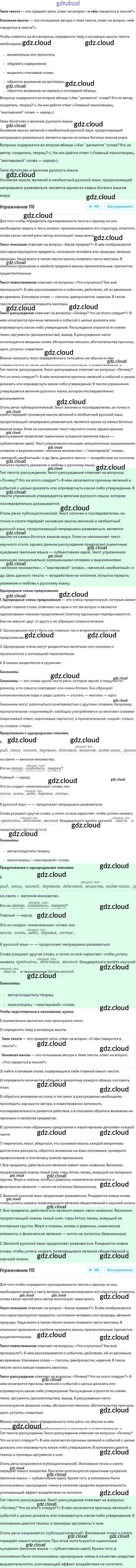 Ответ на задание 110 Учебник Русский язык за 5 (пятый) класс Шмелёв, Флоренская, Габович Алгоритм успеха 2022 Часть 1, 2
