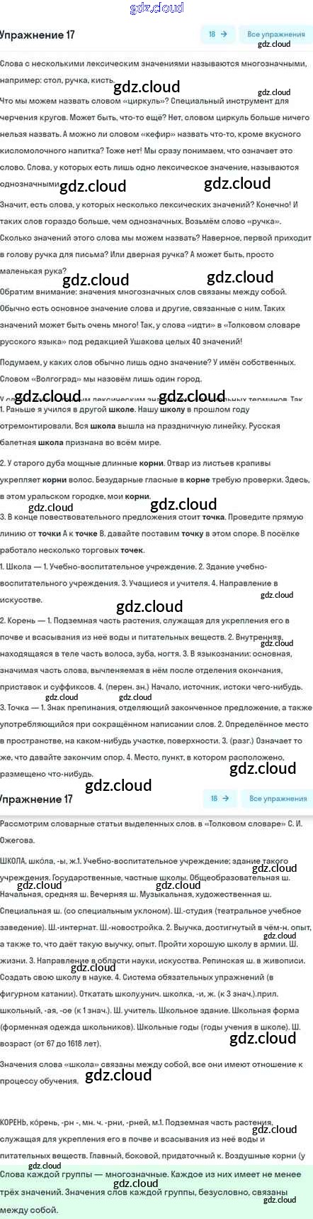 Ответ на задание 17 Учебник Русский язык за 5 (пятый) класс Шмелёв, Флоренская, Габович Алгоритм успеха 2022 Часть 1, 2