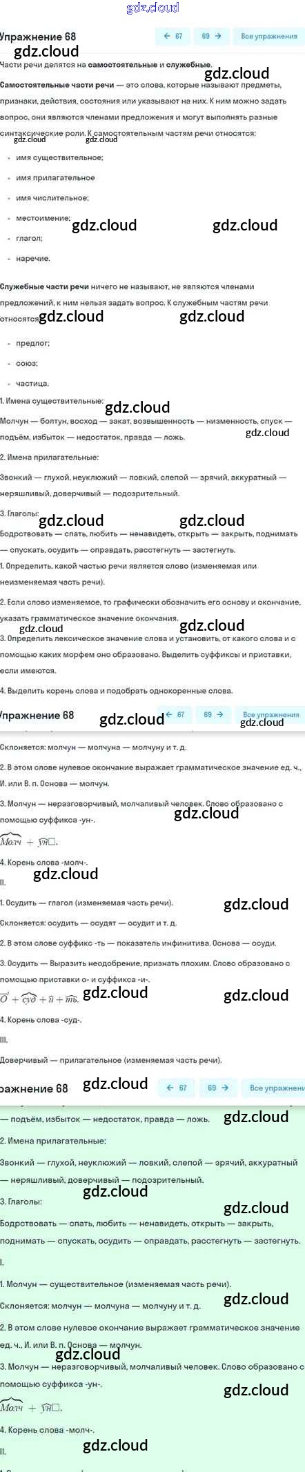 Ответ на задание 68 Учебник Русский язык за 5 (пятый) класс Шмелёв, Флоренская, Габович Алгоритм успеха 2022 Часть 1, 2