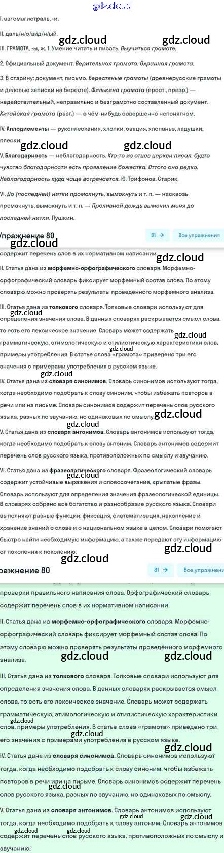 Ответ на задание 80 Учебник Русский язык за 5 (пятый) класс Шмелёв, Флоренская, Габович Алгоритм успеха 2022 Часть 1, 2