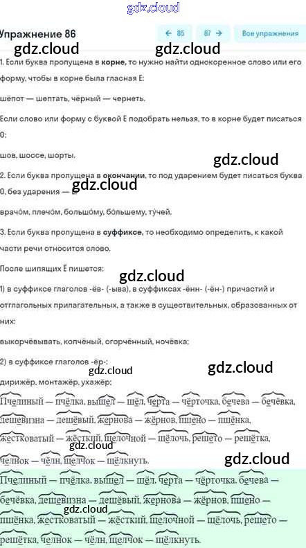 Ответ на задание 86 Учебник Русский язык за 5 (пятый) класс Шмелёв, Флоренская, Габович Алгоритм успеха 2022 Часть 1, 2