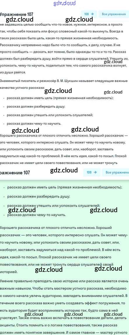 Ответ на задание 107 Учебник Русский язык за 5 (пятый) класс Шмелёв, Флоренская, Габович Алгоритм успеха 2022 Часть 1, 2
