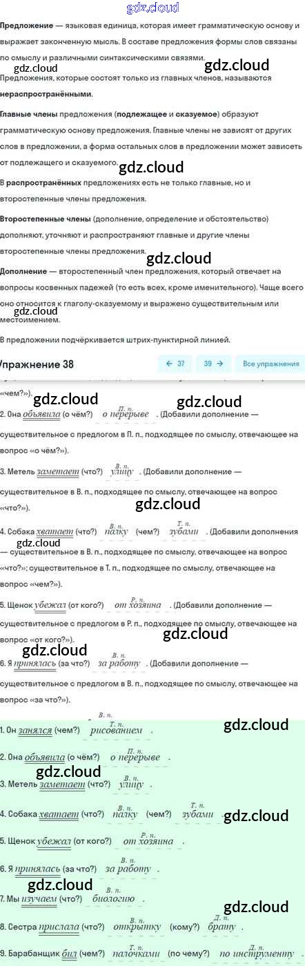Ответ на задание 38 Учебник Русский язык за 5 (пятый) класс Шмелёв, Флоренская, Габович Алгоритм успеха 2022 Часть 1, 2