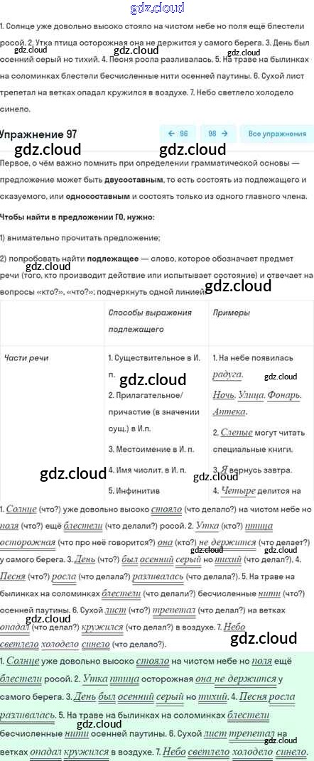 Ответ на задание 97 Учебник Русский язык за 5 (пятый) класс Шмелёв, Флоренская, Габович Алгоритм успеха 2022 Часть 1, 2