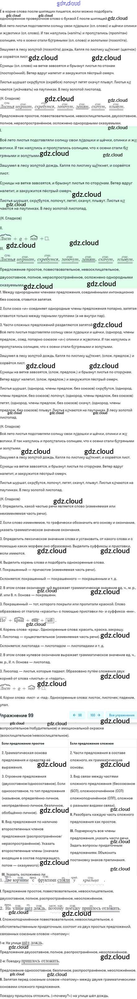 Ответ на задание 99 Учебник Русский язык за 5 (пятый) класс Шмелёв, Флоренская, Габович Алгоритм успеха 2022 Часть 1, 2