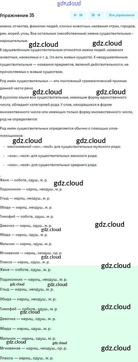 Ответ на задание 35 Учебник Русский язык за 5 (пятый) класс Шмелёв, Флоренская, Габович Алгоритм успеха 2022 Часть 1, 2