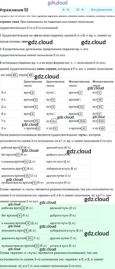 Ответ на задание 52 Учебник Русский язык за 5 (пятый) класс Шмелёв, Флоренская, Габович Алгоритм успеха 2022 Часть 1, 2