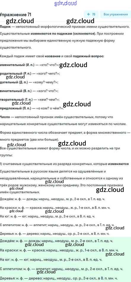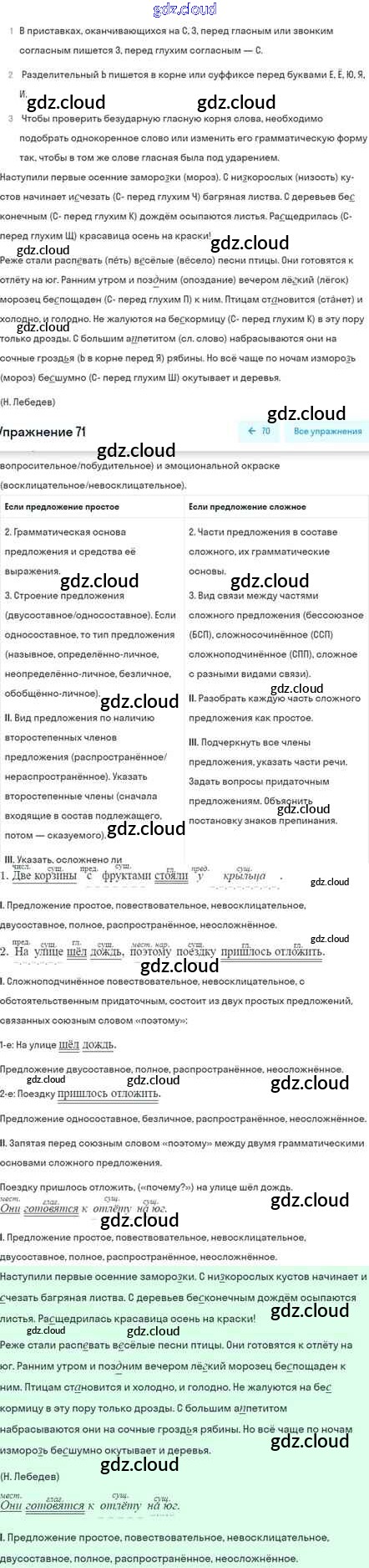 Ответ на задание 71 Учебник Русский язык за 5 (пятый) класс Шмелёв, Флоренская, Габович Алгоритм успеха 2022 Часть 1, 2