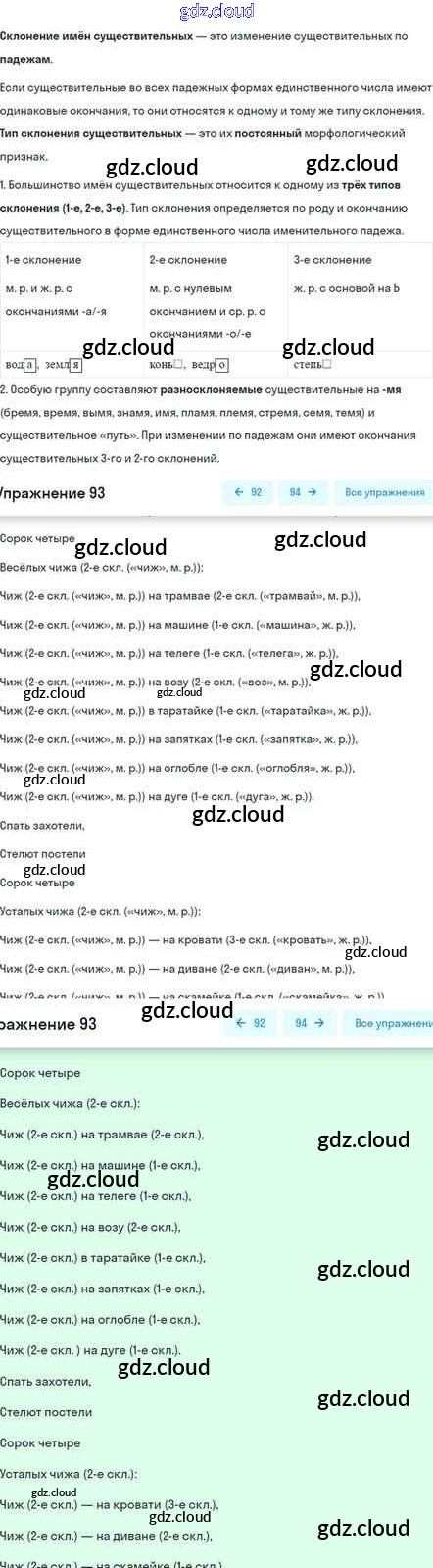 Ответ на задание 93 Учебник Русский язык за 5 (пятый) класс Шмелёв, Флоренская, Габович Алгоритм успеха 2022 Часть 1, 2
