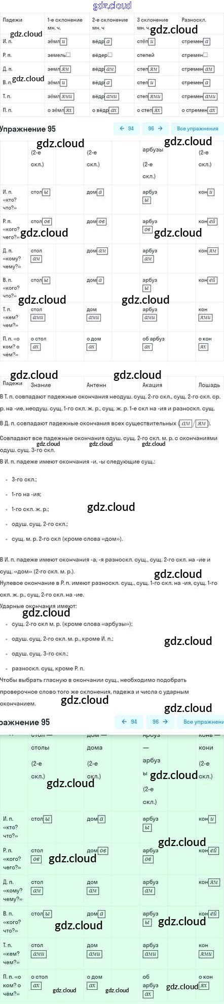 Ответ на задание 95 Учебник Русский язык за 5 (пятый) класс Шмелёв, Флоренская, Габович Алгоритм успеха 2022 Часть 1, 2