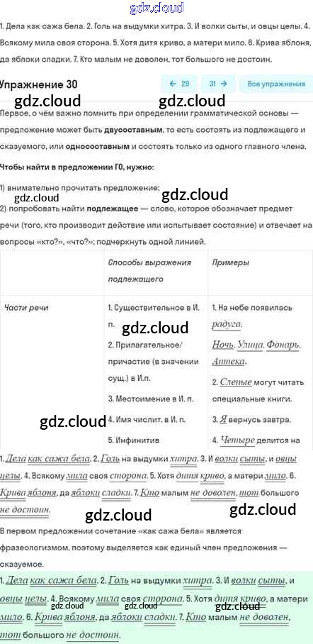 Ответ на задание 30 Учебник Русский язык за 5 (пятый) класс Шмелёв, Флоренская, Габович Алгоритм успеха 2022 Часть 1, 2