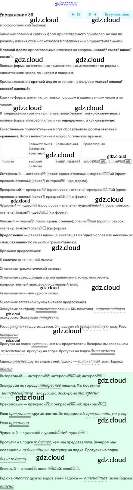 Ответ на задание 36 Учебник Русский язык за 5 (пятый) класс Шмелёв, Флоренская, Габович Алгоритм успеха 2022 Часть 1, 2