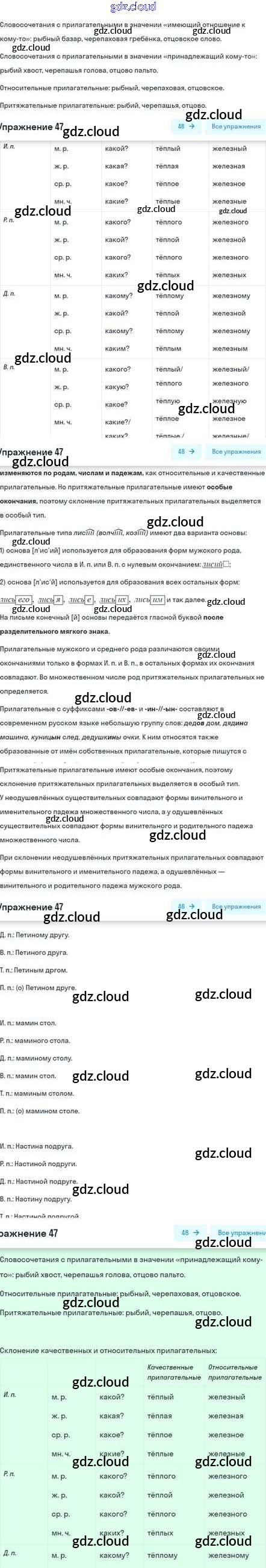 Ответ на задание 47 Учебник Русский язык за 5 (пятый) класс Шмелёв, Флоренская, Габович Алгоритм успеха 2022 Часть 1, 2