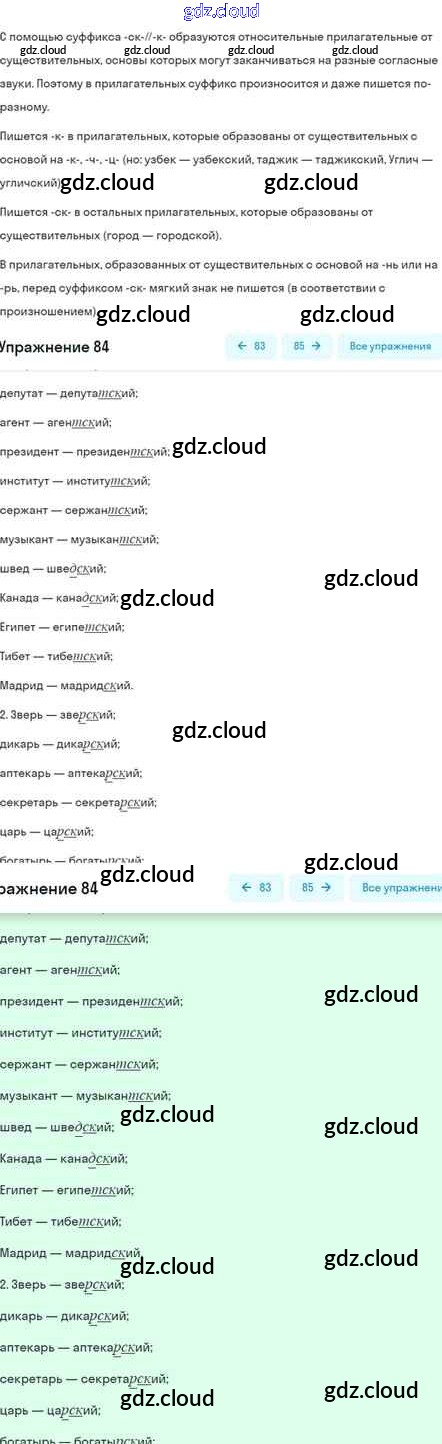 Ответ на задание 84 Учебник Русский язык за 5 (пятый) класс Шмелёв, Флоренская, Габович Алгоритм успеха 2022 Часть 1, 2