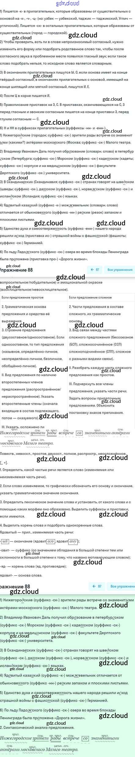 Ответ на задание 88 Учебник Русский язык за 5 (пятый) класс Шмелёв, Флоренская, Габович Алгоритм успеха 2022 Часть 1, 2